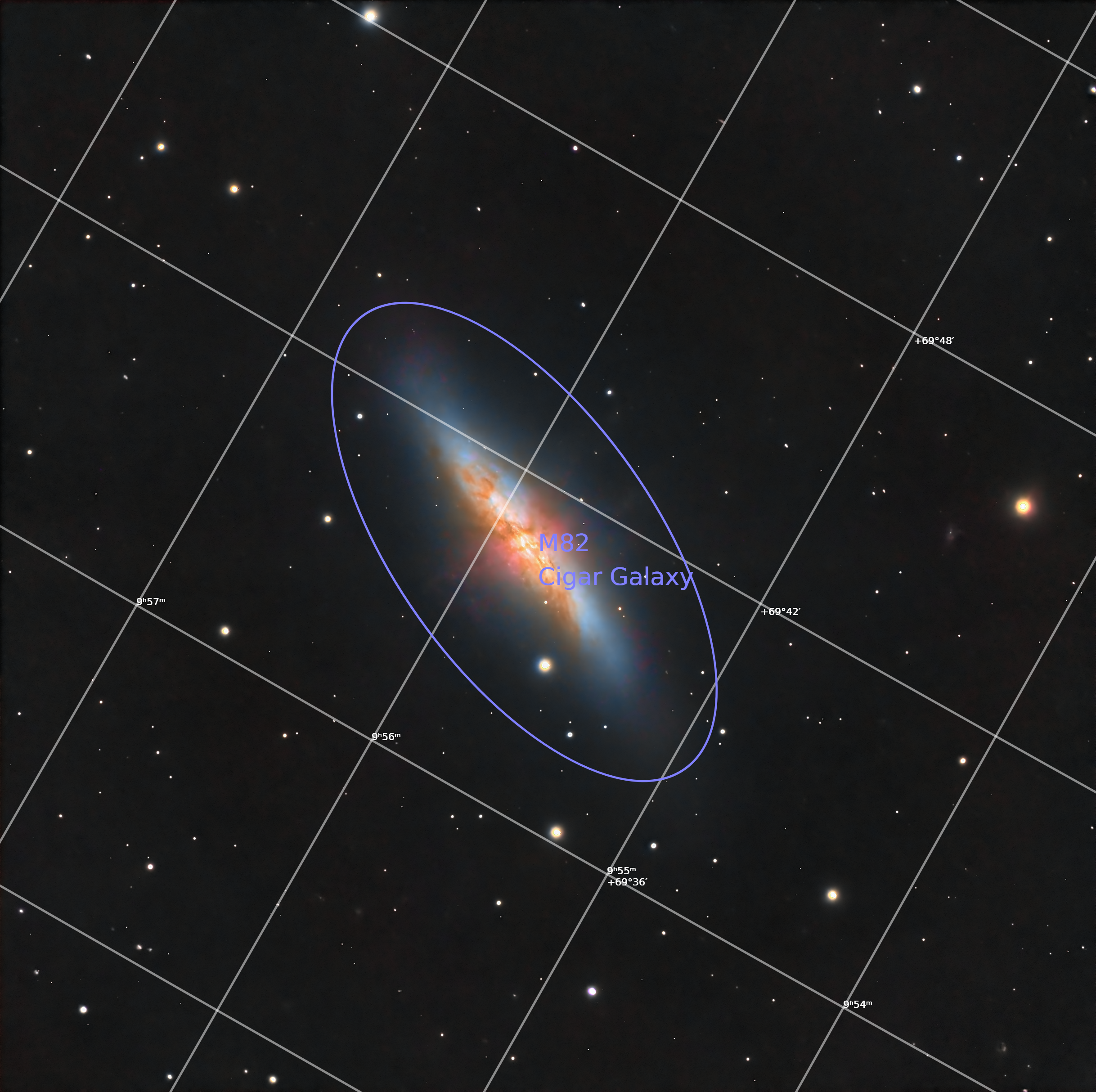 M82 Cigar Galaxy Annotated